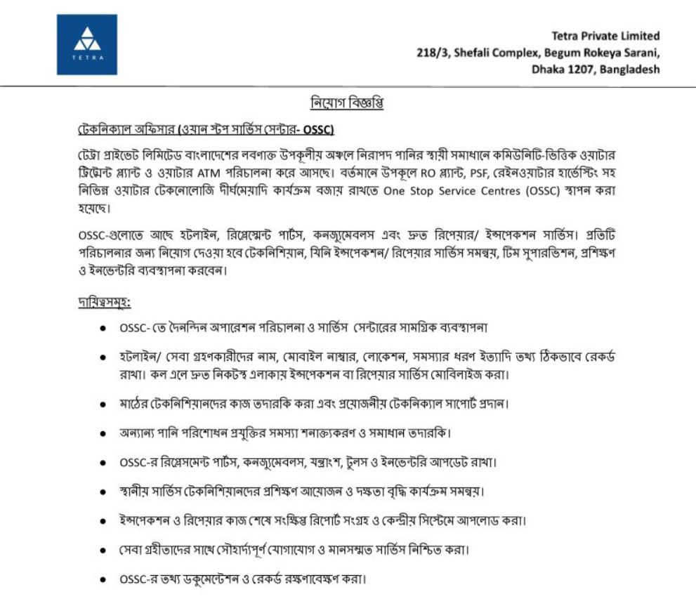 We are looking for a Technical Officer to manage our One Stop Service Center (OSSC) in coastal Bangladesh.
