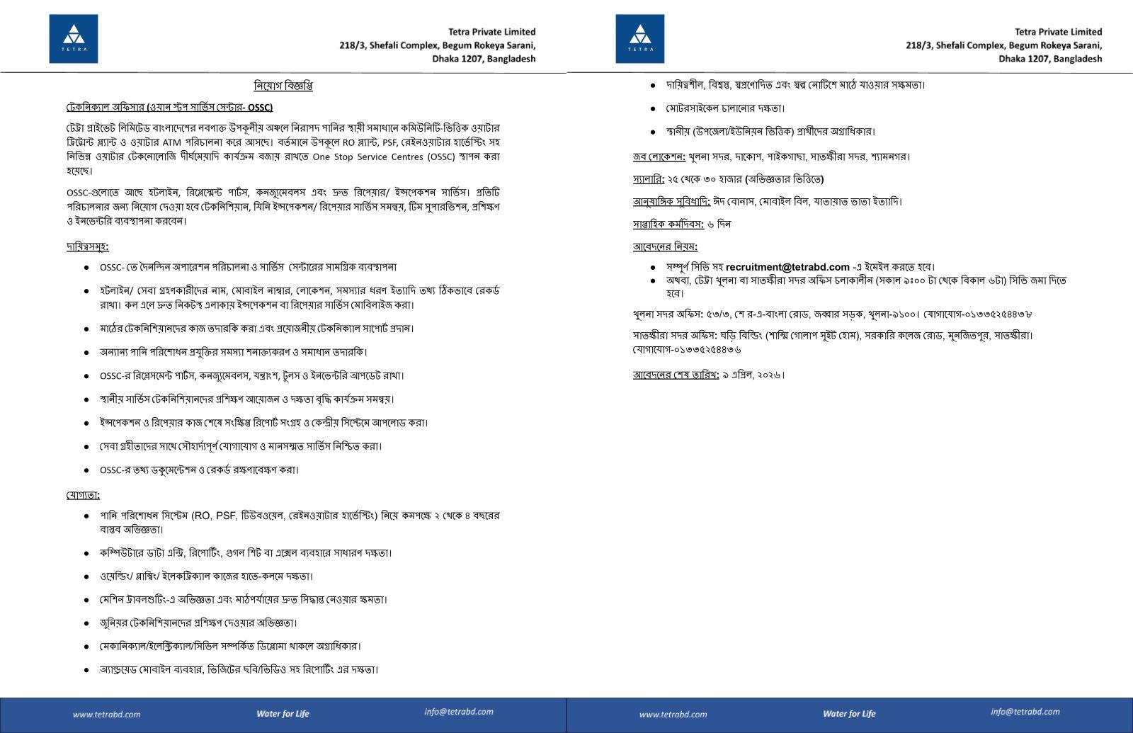 For any further queries, you may reach out to recruitment@tetrabd.com with the subject line "Project Manager - Queries"